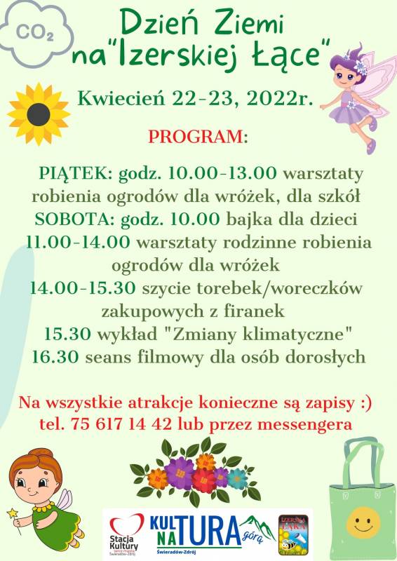 Dzień Ziemi i warsztaty robienia domków/ogrodów dla wróżek, wykład o klimacie i dla dorosłych warsztaty szycia torebek/woreczków „zakupowych” z firanek- taki plan