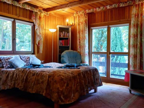 Nasza Chata mieści do 10 osób i jest przystosowana do organizacji spotkań i imprez integracyjnych.W domu znajduję się pięć sypialni, trzy łazienki, kuchnia, salon i jadalnia.