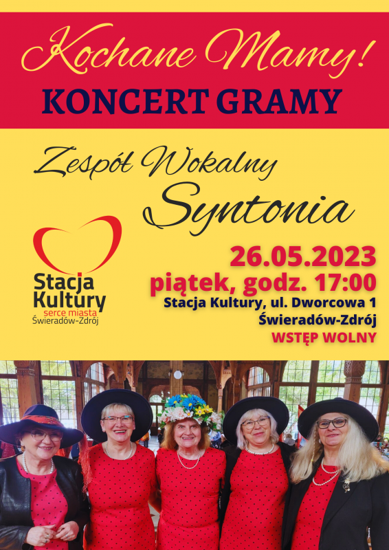 W piątek 26.05.2023 r. świętujcie z nami Dzień Matki! O godz. 17:00 zapraszamy na koncert zespołu Syntonia. Wstęp wolny.