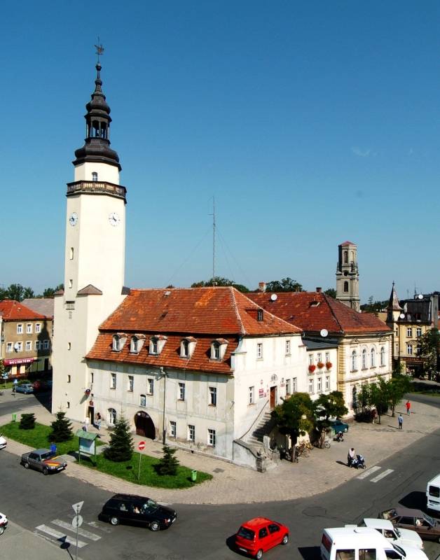 Na náměstí se nachází historická radnice z r. 1558 s barokní kopulí na věži. Na věži se nachází městský znak a erb rodiny Seidlitzů a Schaffgotschů a také zakládací tabule z r. 1559. 8 km.