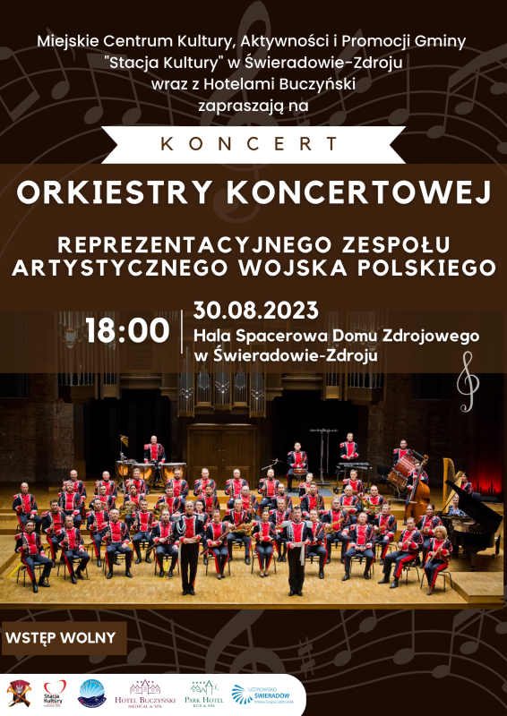 Zapraszamy na wyjątkowy koncert Orkiestry Koncertowej Reprezentacyjnego Zespołu Artystycznego Wojska Polskiego już w środę 30 sierpnia 2023 r. o godz. 18:00 w Hali Spacerowej świeradowskiego Domu Zdrojowego.
