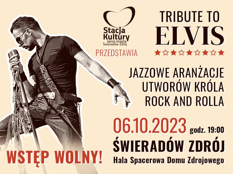To kolejne wydarzenie muzyczne, realizowane w ramach X V I Międzynarodowego Festiwalu Hałda Jazz 2023. Już 6 października w hali Spacerowej Domu Zdrojowego w Świeradowie Zdroju usłyszymy największe hity króla rock'n'rolla (start o godz. 19.00).