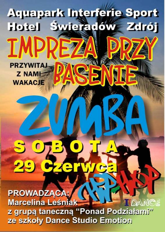 W trakcie imprezy przy basenie - ZUMBA - prowadząca: Marcelina Leśniak z grupą taneczną "Ponad podziałami" ze szkoły Dance Studio Emotion