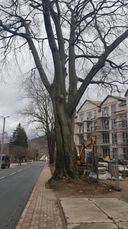 3. Buk pospolity (Fagus sylvatica L.) - przy ul. Bocznej 4, przy myjni – zrośnięty z dębem szypułkowym. Wiek 120 – 150 lat, pierśnica 590 cm. Numer rejestru: 446.