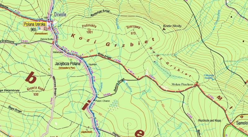 Poniżej do pobrania mapa z nowym przebiegiem szlaku na trasie Polana Izerska - Rozdroże Pod Kopą.