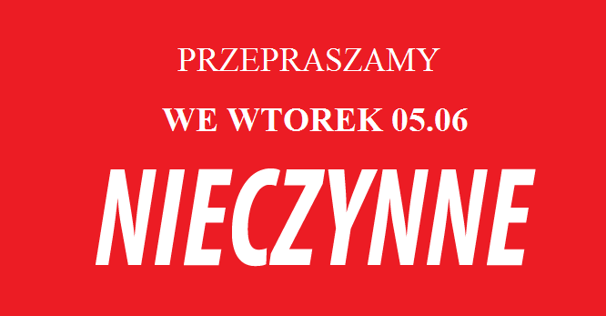 Uprzejmie informujemy, że dnia 05.06 obiekt będzie nieczynny.
