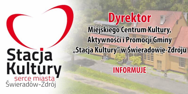 od dnia 01.03.2019 r. swoją działalność rozpoczęło Miejskie Centrum Kultury, Aktywności i Promocji Gminy Stacja Kultury w Świeradowie-Zdroju, które swoją siedzibę ma przy ul. Dworcowej 1.