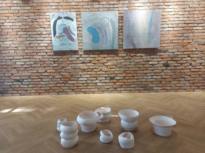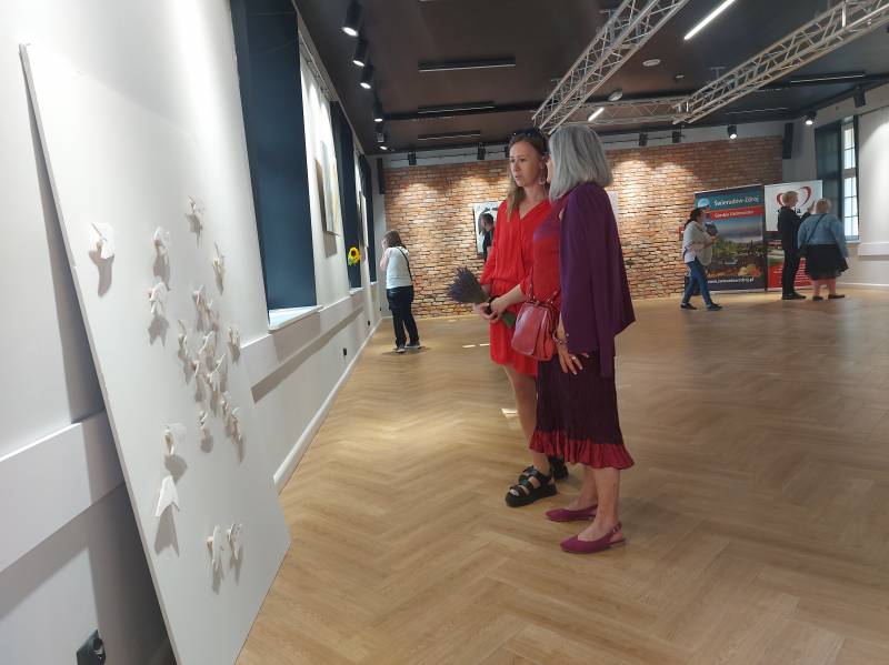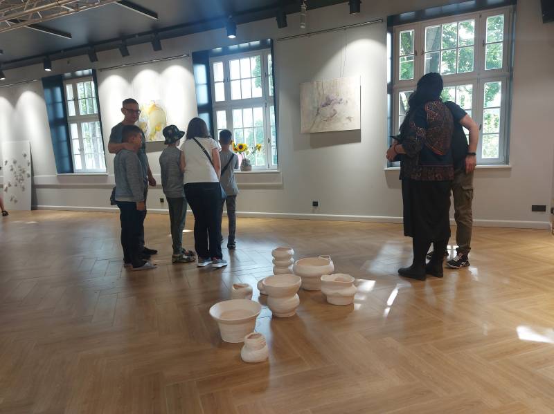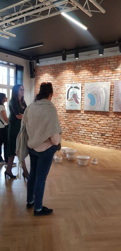 Zgromadzona publiczność - zaproszeni goście, przyjaciele artystki, turyści, prócz obejrzenia prac - obrazów, waz, ale i ceramiki użytkowej (talerzy i czarek) - mogli wysłuchać opowieści Moniki, skąd czerpie inspiracje i jak wygląda proces twórczy. Przyznajemy, że po zakończeniu części oficjalnej, rozmowom kuluarowym nie było końca.