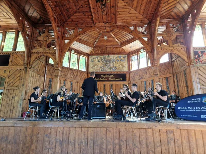 W niedzielę 24 lipca, na Hali Spacerowej Domu Zdrojowego odbył się koncert Zgorzeleckiej Orkiestry Mandolinistów im. Tadeusza Grudzińskiego. Publiczność zgromadzona w zabytkowych wnętrzach hali mogła usłyszeć zarówno utwory muzyki klasycznej, takie jak „Koncert C-dur na mandolinę” Vivaldiego, czy „W grocie Króla Gór” Edvarda Griga oraz współczesne utwory muzyki rozrywkowej: „Ale jazz” duetu Sanah i Vito Bamino czy „Czas nas uczy pogody” - kompozycję Krzesimira Dębskiego do słów Jacka Cygana w wykonaniu solistki Amelii Papacz. Na zakończenie nie zabrakło też mocniejszego brzmienia w składance przebojów rockowych. Koneserzy tego rodzaju muzyki z łatwością mogli rozpoznać takie utwory jak: „Highway to Hell” zespołu AC/DC, czy „The Wall” Pink Floyd.
