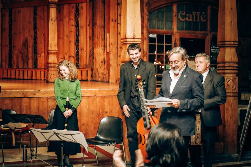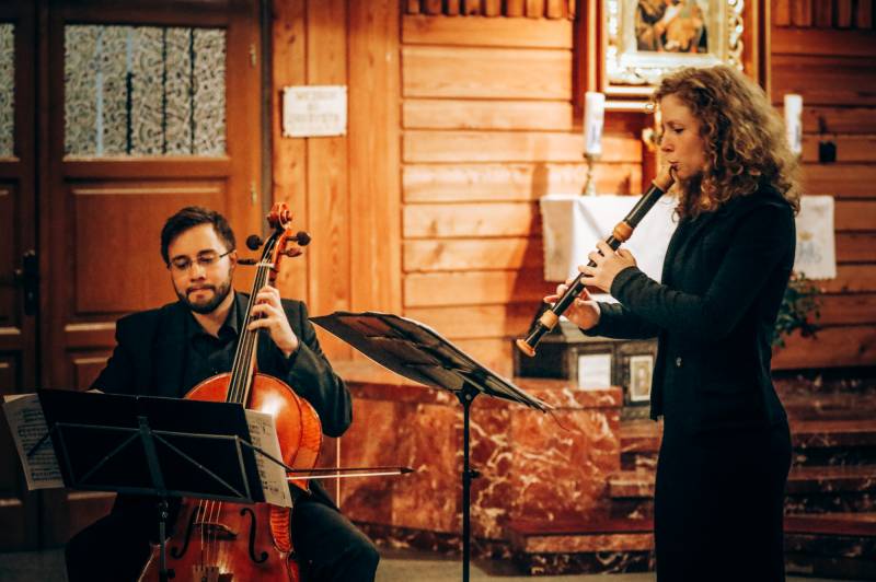 Przypomnę: w czwartek 08.09.2022 koncert inauguracyjny wykonało duo “Poject R&C” w składzie: Magdalena Spielmann – flety proste i Szczepan Dembiński – wiolonczela barokowa, w piątek 09. 09. 2022 recital na violi da gamba wykonał Radosław Dembiński, a w sobotę mieliśmy okazję uczestniczyć w premierze Suity na Klawesyn i Zespół Kameralny pt. “W 80-dni dookoła świata” skomponowanej przez Radosława Dembińskiego. O poziomie i zainteresowaniu tymi prezentacjami może świadczyć, że już wiadomo, że koncerty będą wykonane w przyszłym roku na międzynarodowym festiwalu “Maj z Muzyką Dawną” we Wrocławiu. Wspaniale zaprezentowała się cała ekipa moich przyjaciół z Elbląga: Ryszard Skotnicki, Marcin Skotnicki i jego zespół fletów prostych “Il Vento Musicale”.