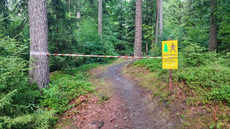 Utrudnienia będą odczuwalne również na szlakach turystycznych czarnym (w stronę Groty oraz zielonym w kierunku Czerniawy).