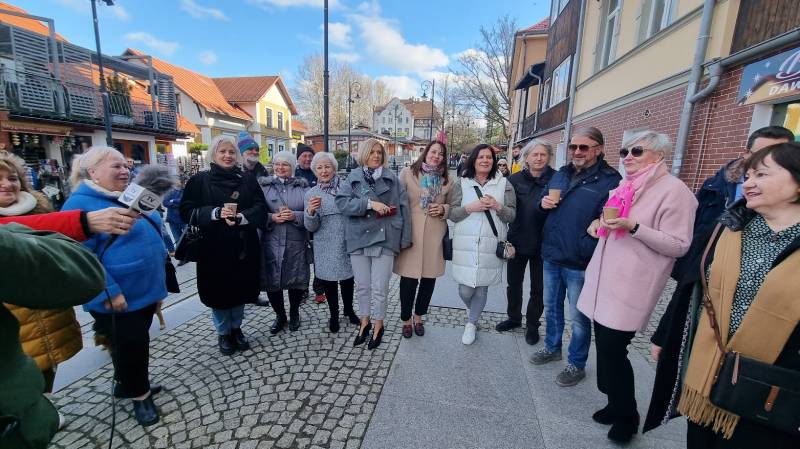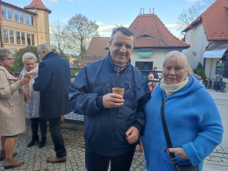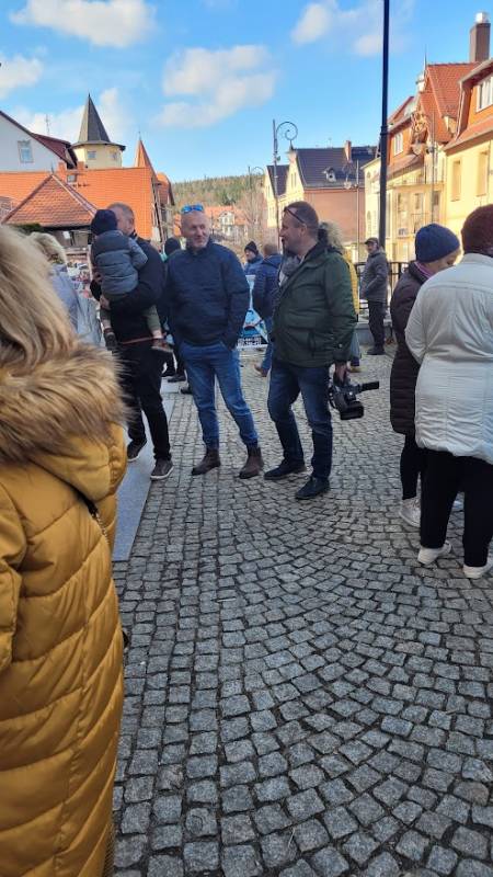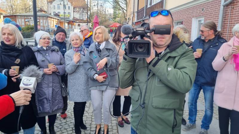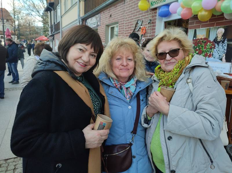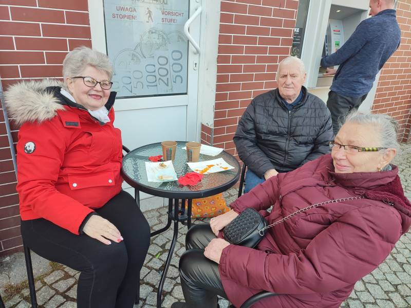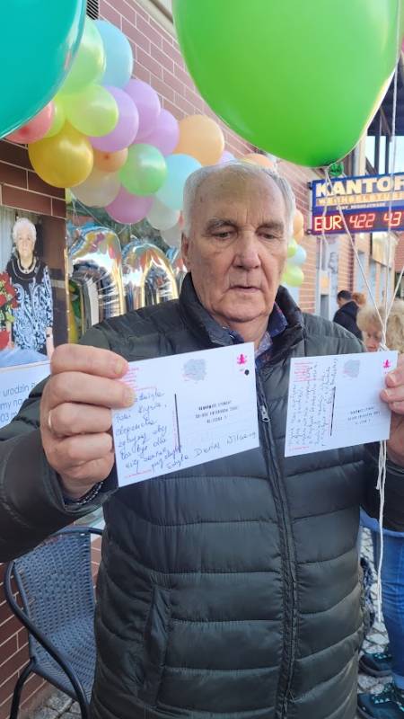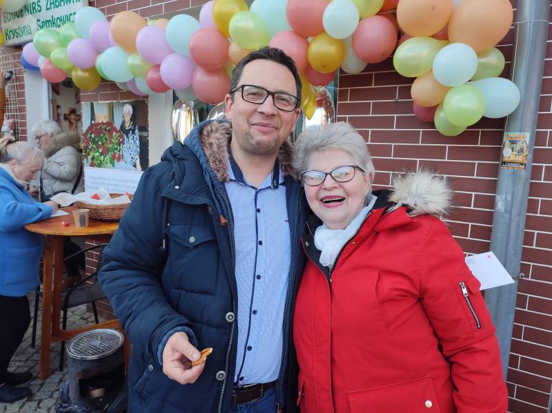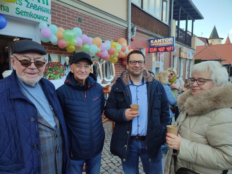 O godzinie 15:00 świętowanie urodzin Stulatki przeniosło się... na ulicę Zdrojową, przed kultowy już sklep Pani Krystyny! Otwarty charakter wydarzenia i akcja informacyjna przeprowadzona przez mieszkańców sprawiły, że na urodzinowym przyjęciu zjawiło się szerokie grono nie tylko znajomych Jubilatki, ale również innych mieszkańców Świeradowa-Zdroju, którzy chcieli wyrazić swój szacunek dla wieku i wspaniałej historii Pani Krystyny, zostawiając w sklepie upominki dla niej. Na miejscu obecna była m.in. Pani Dyrektor Stacji Kultury, Pani Doroty Marek, która złożyła na ręce rodziny piękny prezent dla Pani Semkowicz – kosz pełen pyszności. Nie zabrakło tam także Redakcji Notatnika Świeradowskiego, której przedstawicielka również przekazała drobny podarek dla szanownej Jubilatki. Organizująca przyjęcie rodzina Pani Krystyny zadbała o urodzinowe dekoracje i przepyszny poczęstunek, dzięki czemu wszyscy obecni bawili się wyśmienicie