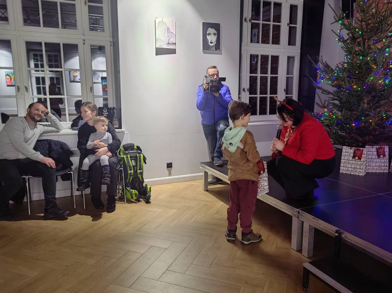 Zaczęliśmy wyjątkowo – dzieci przygotowały wspaniałe filmiki z wierszykami i piosenkami dla św. Mikołaja! Każde dziecko zostało nagrodzone specjalnym prezentem za te cudowne nagrania! A potem… nadszedł moment, na który wszyscy czekaliśmy! Prawdziwy św. Mikołaj pojawił się u nas osobiście! Zaparkował swoje renifery na peronie, a z dźwiękiem dzwonków wkroczył w tłum radosnych dzieci, rodziców i dziadków. Oczywiście nie zapomnieliśmy o drobnych upominkach dla każdego, a do tego słodkie poczęstunki!