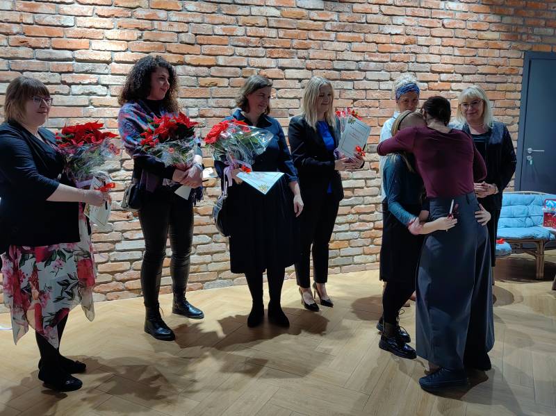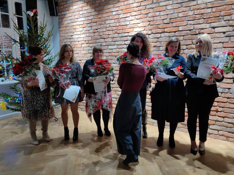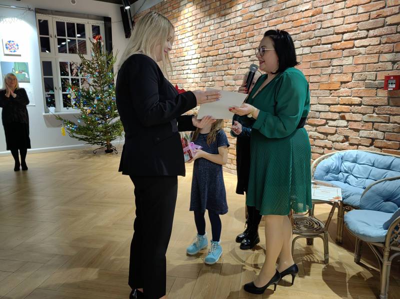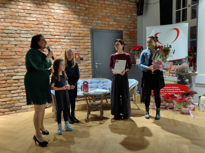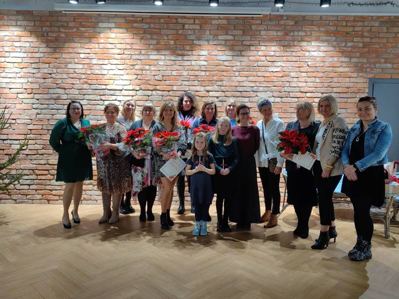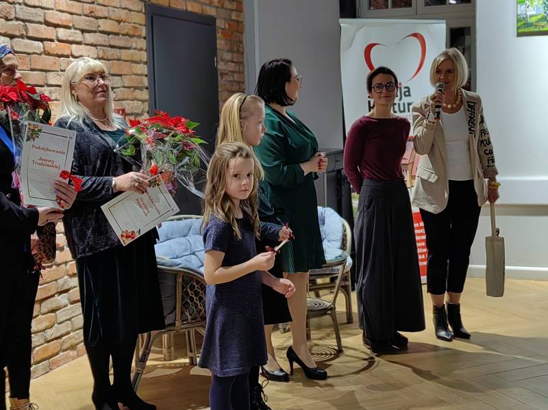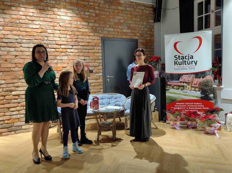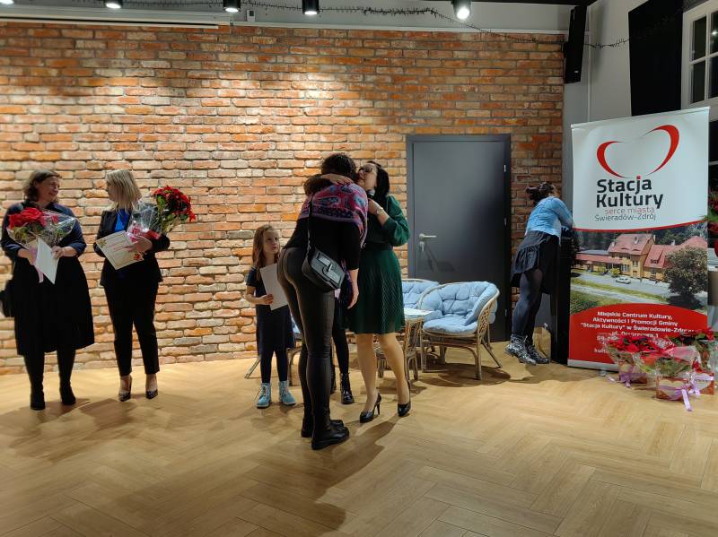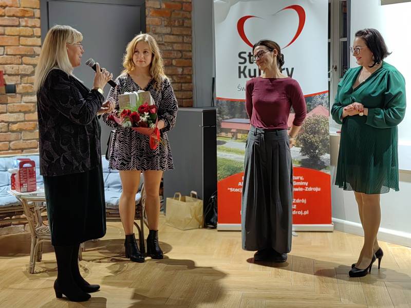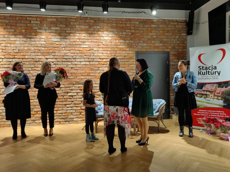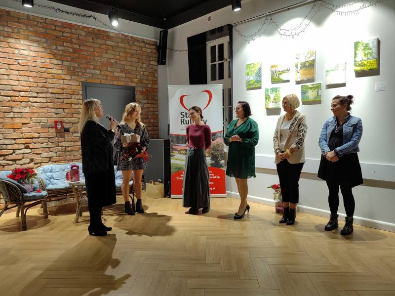 Wernisaż był również momentem pełnym emocji. W trakcie uroczystości p.o. Dyrektor Stacji Kultury, Pani Diana Słupska, wręczyła dyplomy oraz podziękowania dla artystek, które włożyły ogromny wysiłek w przygotowanie wystawy. Nie zabrakło także symbolicznych gestów – każda z pań otrzymała czerwoną gwiazdę betlejemską, nawiązującą do nadchodzących Świąt Bożego Narodzenia.