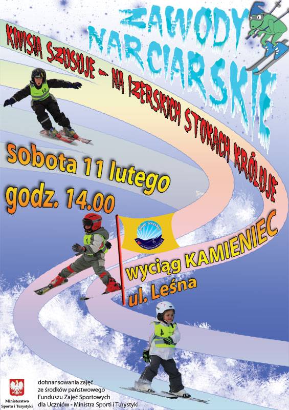 Zapraszamy wszstkie dzieci do udziału w zawodach narciarskich, które odbędą się 11 lutego (sobota) o godz. 14.00 na stoku narciarskim przy wyciągu KAMIENIEC - ul. Leśna.