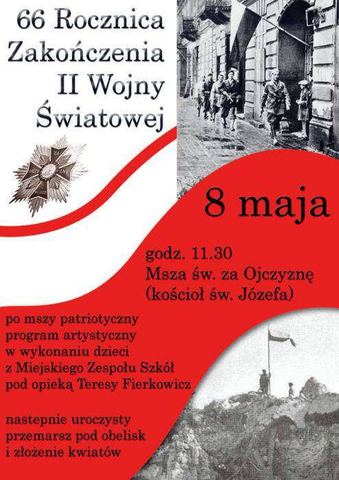 8 maja odbędą się uroczystości poświęcone 66 rocznicy zakończenia II Wojny Światowej.