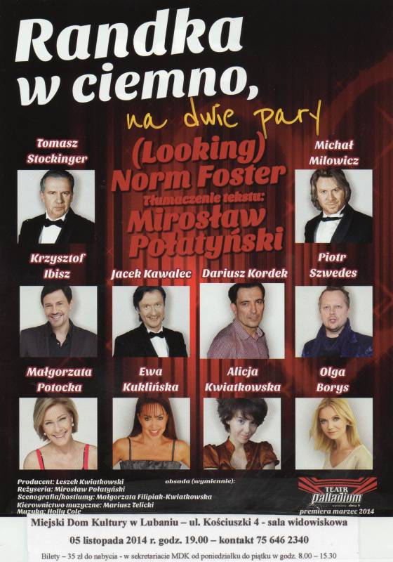Miejski Dom Kultury w Lubaniu zaprasza na znakomity spektakl komediowy pt. „Randka w ciemno, na dwie pary”.