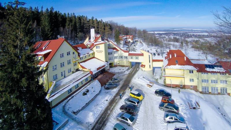Gebäudekomplex ist auf der Sonnenseitedes Isergebirges gelegen, umgeben von einem Park mit dem Weg der Gesundheit und duftende, Fichtenwalder von vielen zwitschenden Vögeln und Tiere des Waldes bewohnt .Ruhe und Kontakt mit der Natur.
