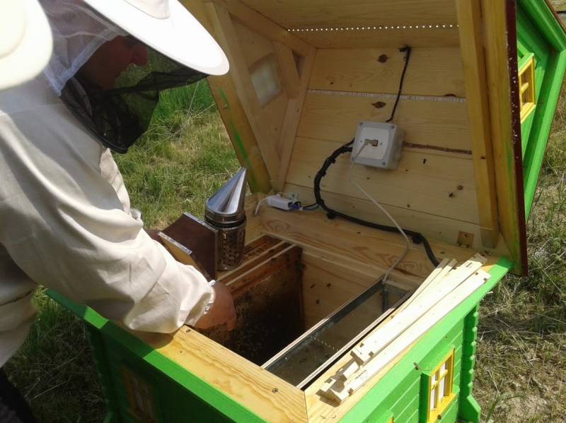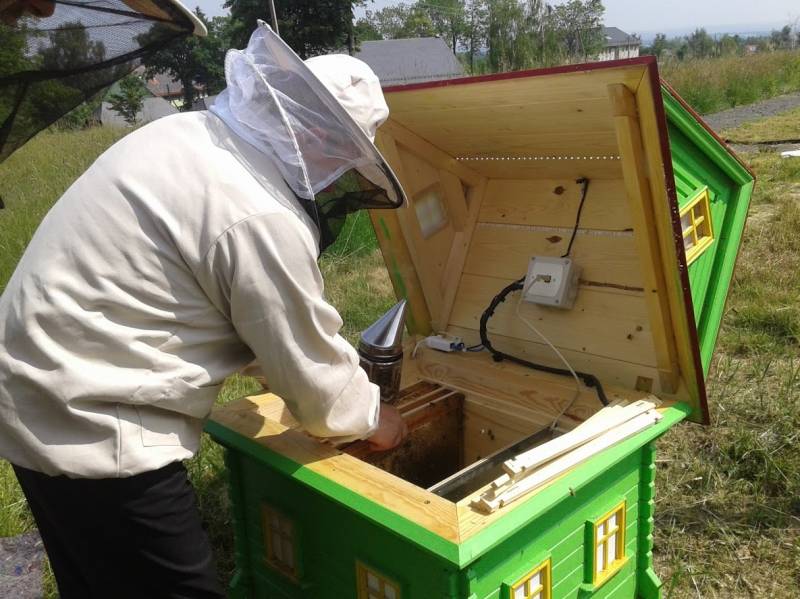 Ul wyposażony w system mikrokamer i mikrofon umożliwiający całodobową obserwację pszczół.