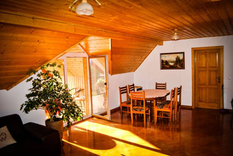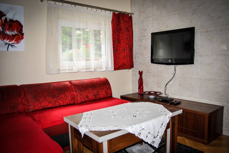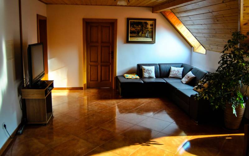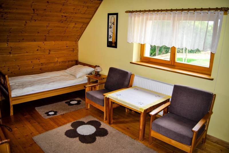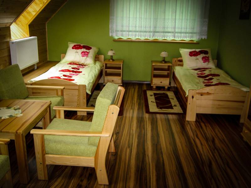 Oferujemy naszym Gościom komfortowe pokoje 2 i 3 osobowe oraz apartamenty. Pokoje są wygodne i ładnie urządzone z łazienkami, TV – SAT i radiem. Do dyspozycji Gości przeznaczony jest aneks kuchenny z pełnym wyposażeniem, taras, balkon, miejsce na grila, miejsce parkingowe oraz plac zabaw dla dzieci. Dodatkowo apartamenty mają swoje osobne aneksy kuchenne oraz wszyscy mogą korzystać z bezprzewodowego połączenia z internetem.