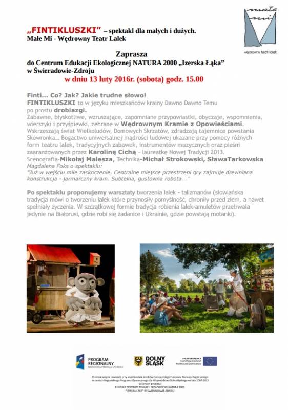 Małe Mi - Wędrowny Teatr Lalek Zaprasza do Centrum Edukacji Ekologicznej NATURA 2000 „Izerska Łąka” w Świeradowie-Zdroju w dniu 13 luty 2016 r. (sobota) godz. 15.00