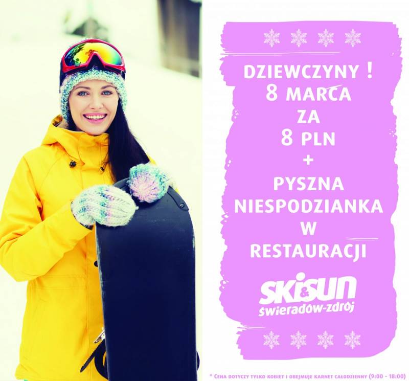 08/03/2016 tylko dla płci pięknej cena karnetu całodziennego (9.00-18.00) = 8 PLN :)