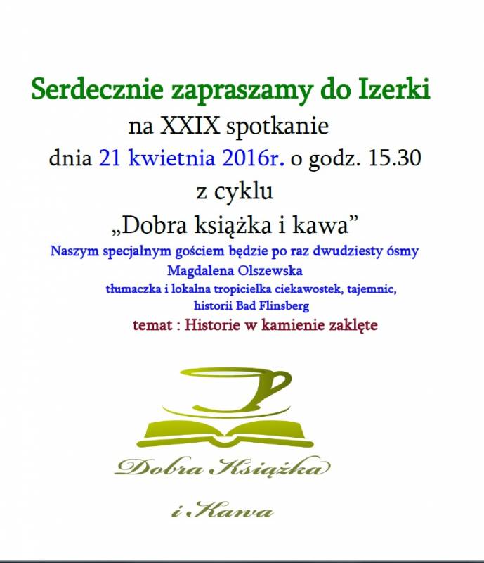 Serdecznie zapraszamy do Izerki na XXIX spotkanie dnia 21 kwietnia 2016 r. o godz. 15.30