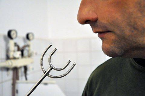 Zabieg płukania przyzębia wykonywany jest wodą radonową przy użyciu specjalnych widełek, przez które przepływa woda masując obie strony przyzębia przez 10 min.