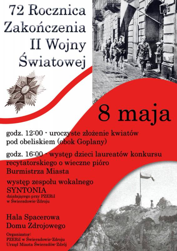 Serdecznie zapraszamy do udziału w obchodach 72. Rocznicy Zakończenia II wojny światowej,