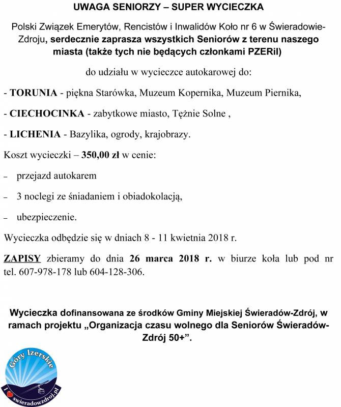 UWAGA SENIORZY – SUPER WYCIECZKA