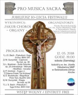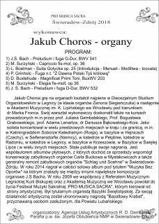12 maja w sobotę o godzinie 19:00 w Kościele p.w. św. Józefa Oblubieńca NMP w Świeradowie-Zdroju odbędzie się koncert muzyki sakralnej na organach w wykonaniu Jakuba Choros