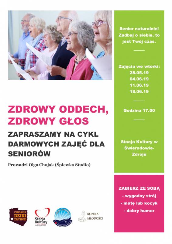 „ Zadbaj o siebie, to jest Twój czas” - pod tym hasłem Fundacja „Dziki Zachód” zaprasza seniorów ze Świeradowa-Zdroju na cykl zajęć poświęconych zdrowiu i dobremu samopoczuciu. Dla uczestników będzie to możliwość zdobycia nowej wiedzy i poznania wielu dobroczynnych dla zdrowia ćwiczeń, jak również okazja do spotkania i wspólnej zabawy. W maju i czerwcu w świeradowskiej Stacji Kultury odbędą się następujące zajęcia: