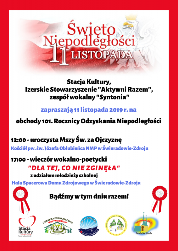 Zapraszamy do udziału w uroczystych obchodach Święta Niepodległości 11 Listopada.