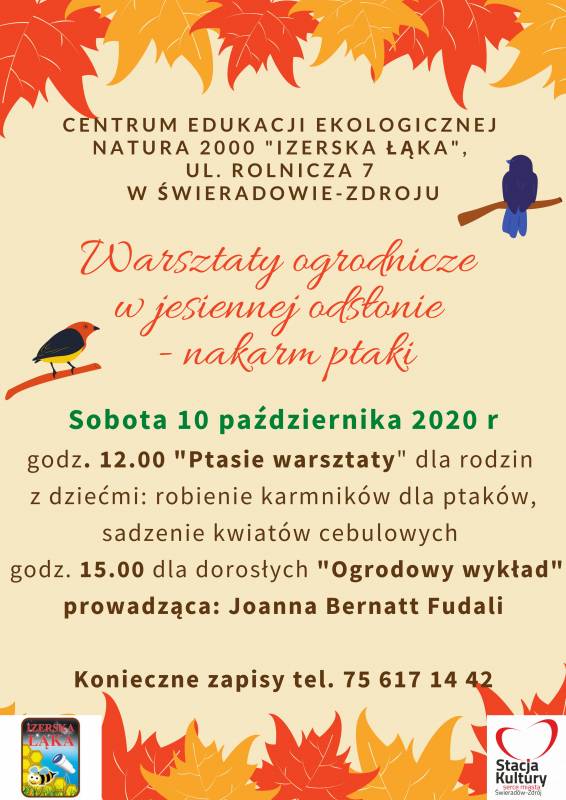 "Izerska Łąka" serdecznie zaprasza w sobotę (10.10) na godz. 12.00 i 15.00 na "Ptasie warsztaty" oraz "Ogrodowy wykład". Konieczne zapisy i konieczne maseczki. Jeśli pogoda pozwoli zajęcia odbędą się na ogrodzie pod wiatą.
