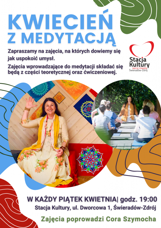 Serdecznie zapraszamy na Kwiecień z Medytacją! W każdy piątek kwietnia o godz. 19:00 spotykamy się na Stacji Kultury, aby razem uspokoić umysł w trakcie zajęć prowadzonych przez Corę Szymochę :)
