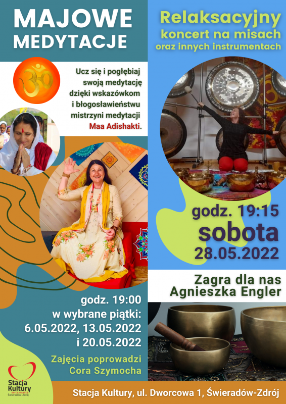 Z kolei w sobotę 28 maja zapraszamy na relaksacyjny koncert na misach oraz innych instrumentach.