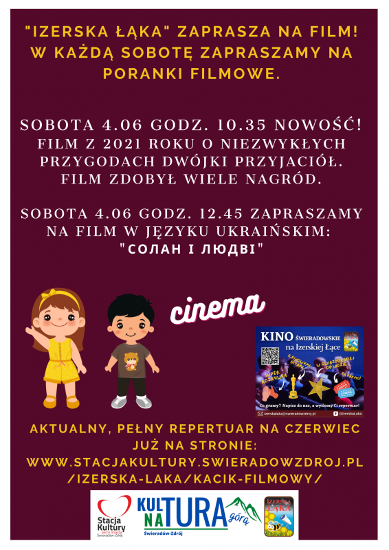 Wszystkiego najlepszego Wam życzymy i zapraszamy dzisiaj po południu do MCKAIPG "Stacja Kultury" na fantastyczną zabawę, a na Izerską Łąkę zapraszamy w sobotę (4.06) na przepiękny film dla całej rodziny o godz. 10.35, NOWOŚĆ!
