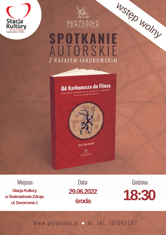 Zapraszamy na spotkanie autorskie Rafała Jakubowskiego, nt. książki "Od Karkonosza do Flinsa", które odbędzie się 29 czewrca, o godz.18.30, w Stacji Kultury, przy ul. Dworcowej 1 w Świeradowie-Zdroju.