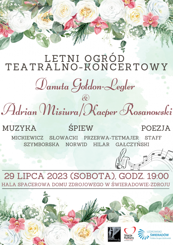 Do świeradowskiej Hali Spacerowej zawita Letni Ogród Teatralno-Koncertowy - projekt mający propagować kulturę muzyczną i teatralną na Dolnym Śląsku. Łączy w sobie muzykę, śpiew i poezję. W koncercie zabrzmią wiersze o miłości polskich poetów między innymi: Adama Mickiewicza, Juliusza Słowackiego, Kazimierza Przerwy-Tetmajera, Leopolda Staffa, Wisławy Szymborskiej, Cypriana Kamila Norwida, Małgorzaty Hilar, Konstantego Ildefonsa Gałczyńskiego. W koncercie zabrzmią utwory o tematyce miłosnej - La vie En Rose, Milord, Padam, Bo to jest miłość, Kocha się raz, Walc z Anny Kareniny.