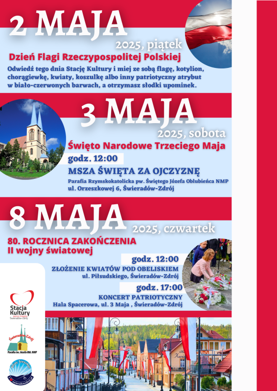 Zapraszamy mieszkańców i gości do wspólnego świętowania majowych dni pełnych historii, dumy narodowej i patriotyzmu!