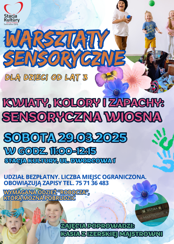 Zapraszamy najmłodszych na wyjątkowe warsztaty sensoryczne „Kwiaty, kolory i zapachy: Sensoryczna wiosna”! Dzieci poprzez zabawę poznają wiosenne barwy, tekstury i zapachy, rozwijając swoje zmysły i kreatywność.