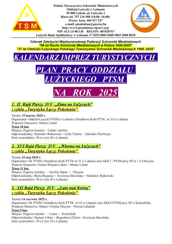 KALENDARZ IMPREZ TURYSTYCZNYCH OŁ PTSM W 2025