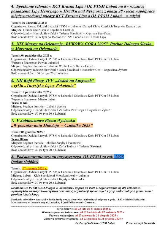 Oddział Łużycki PTSM w Lubaniu zaprasza w roku 2025 do wspólnego