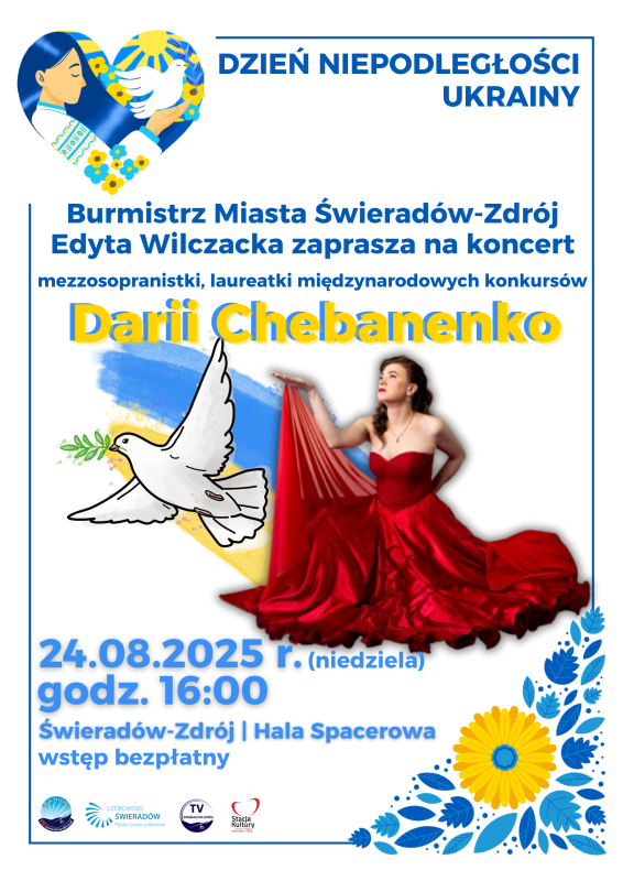 Burmistrz Miasta Świeradów-Zdrój, Edyta Wilczacka, ma zaszczyt zaprosić na koncert wybitnej mezzosopranistki Darii Chebanenko, laureatki międzynarodowych konkursów.