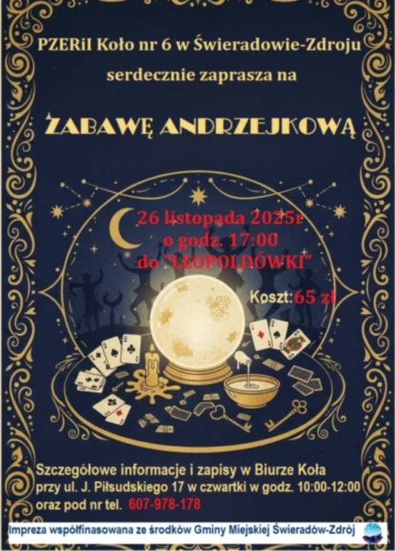 PZERiI Koło nr 6 w Świeradowie-Zdroju zaprasza wszystkich chętnych na wyjątkową Zabawę Andrzejkową, która odbędzie się: