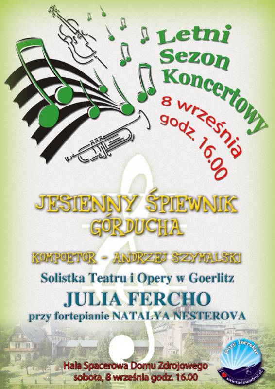 Zapraszamy Państwa na przedstawienie pn. J E S I E N N Y ŚPIEWNIK GÓRDUCHA, które odbędzie się 8 września o godz. 16.00 w Hali Spacerowej Domu Zdrojowego.