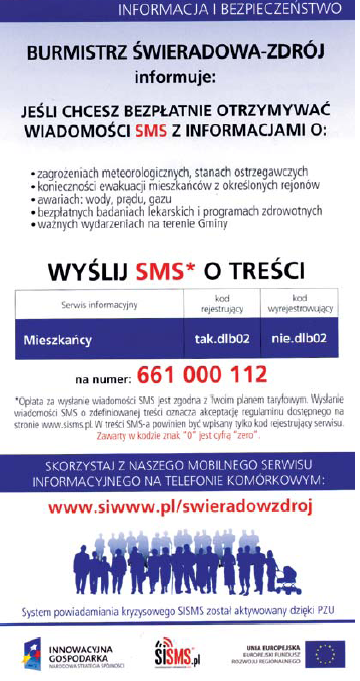 Jeśli chcesz bezpłatnie otrzymywać wiadomości SMS z informacjami o: