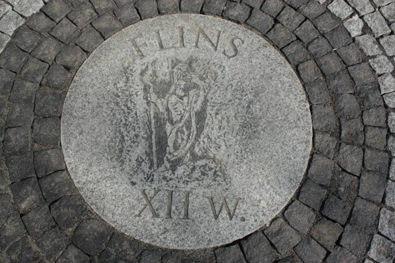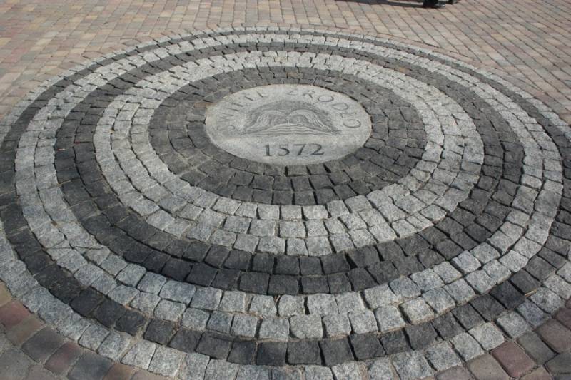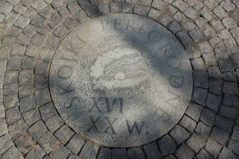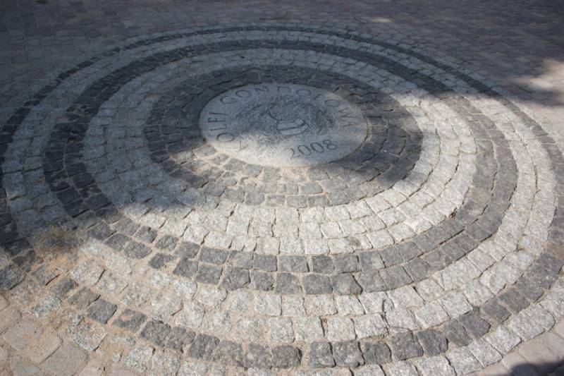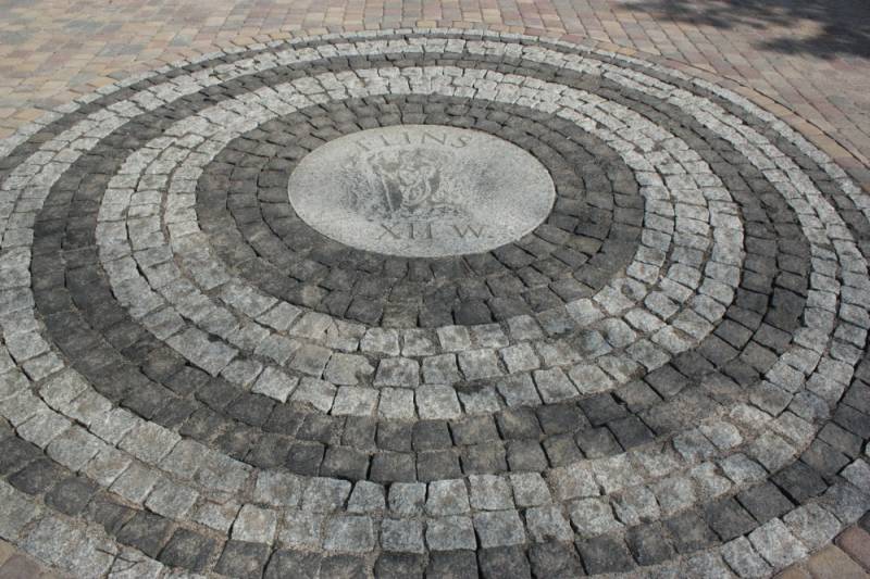 Rozety składają się z bloków granitowych w kształcie koła o średnicy 1 metra, a na każdym z bloków wykonane zostały płaskorzeźby. Obwoluta koła wykonana została z kilku rzędów naprzemiennie ułożonej kostki granitowej i bazaltowej.