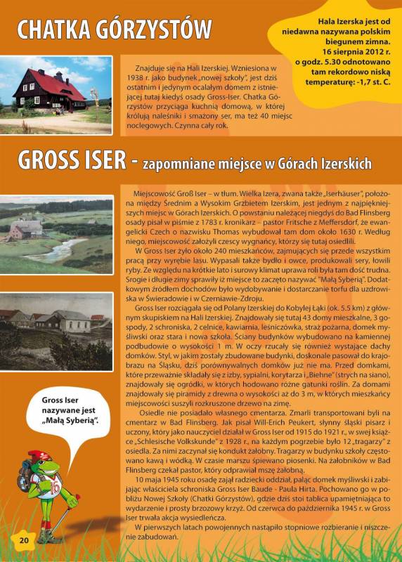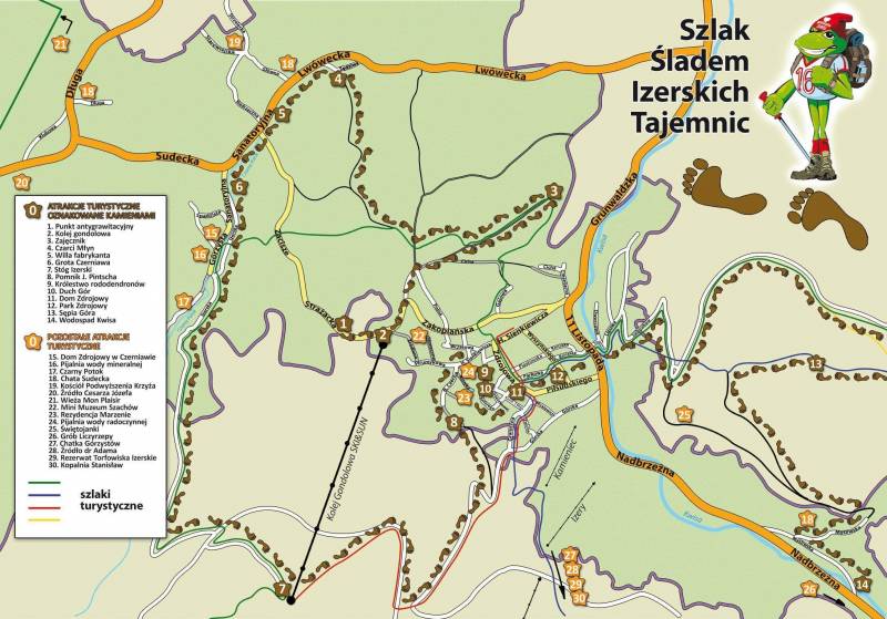 Im Rahmen des Projekts "Auf der Spur von Isergeheimnissen" wurde im Isergebirge an 22 touristischen Sehenwurdigkeiten eine neue Wanderroute mit Felssteinen gekennzeichnet, die mit einem Relief und einem geheimnisvollen Hologramm versehen wurden. Der Teilnehmer des vorgeschlagenen Bergspiels "Entdecker von Isergebirge" hat die Aufgabe, mindestens 15 geheimnisvolle Objekte zu finden, ihre Hologramme auf einen Papierzettel abzuzeichnen und sich an das städtische Zentrum für Kultur, Aktivität und Gemeindeförderung "Kulturbahnhof" (Miejskie Centrum Kultury, Aktywności i Promocji Gminy "Stacja Kultury") in der Strasse Dworcowa 1 zu melden. Dort wird er ein "Entdeckerzertifikat" erhalten und in das "Buch der Entdecker des Isergebirges" eingeschrieben.