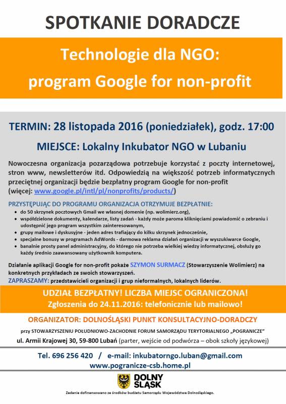 BEZPŁATNE DORADZTWO dla NGO - LISTOPAD 2016 / Lubań